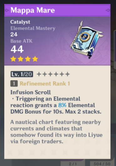 Triggering an elemental reaction grants a 8/10/12/14/16% elemental dmg bonus for 10s. Mappa mare is a catalyst in genshin impact. Detailed profile, video guides, recommended characters community video guides & discussions. Triggering an elemental reaction grants a 8/10/12/14/16% elemental dmg bonus for 10s. This one is able to conjure basic elemental magical attacks.